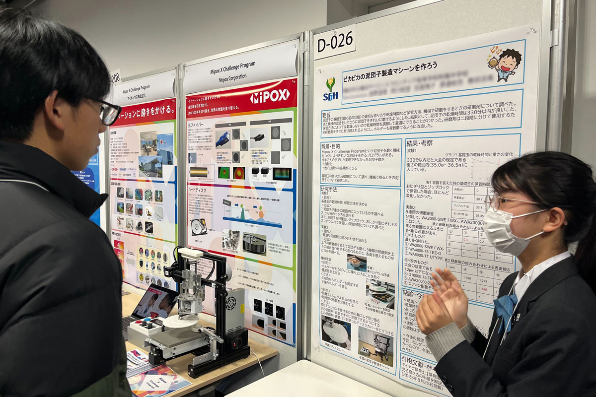 当社のブース展示の隣では、本年のプレ実施で参加した中学校の生徒によるポスター発表も行われました。